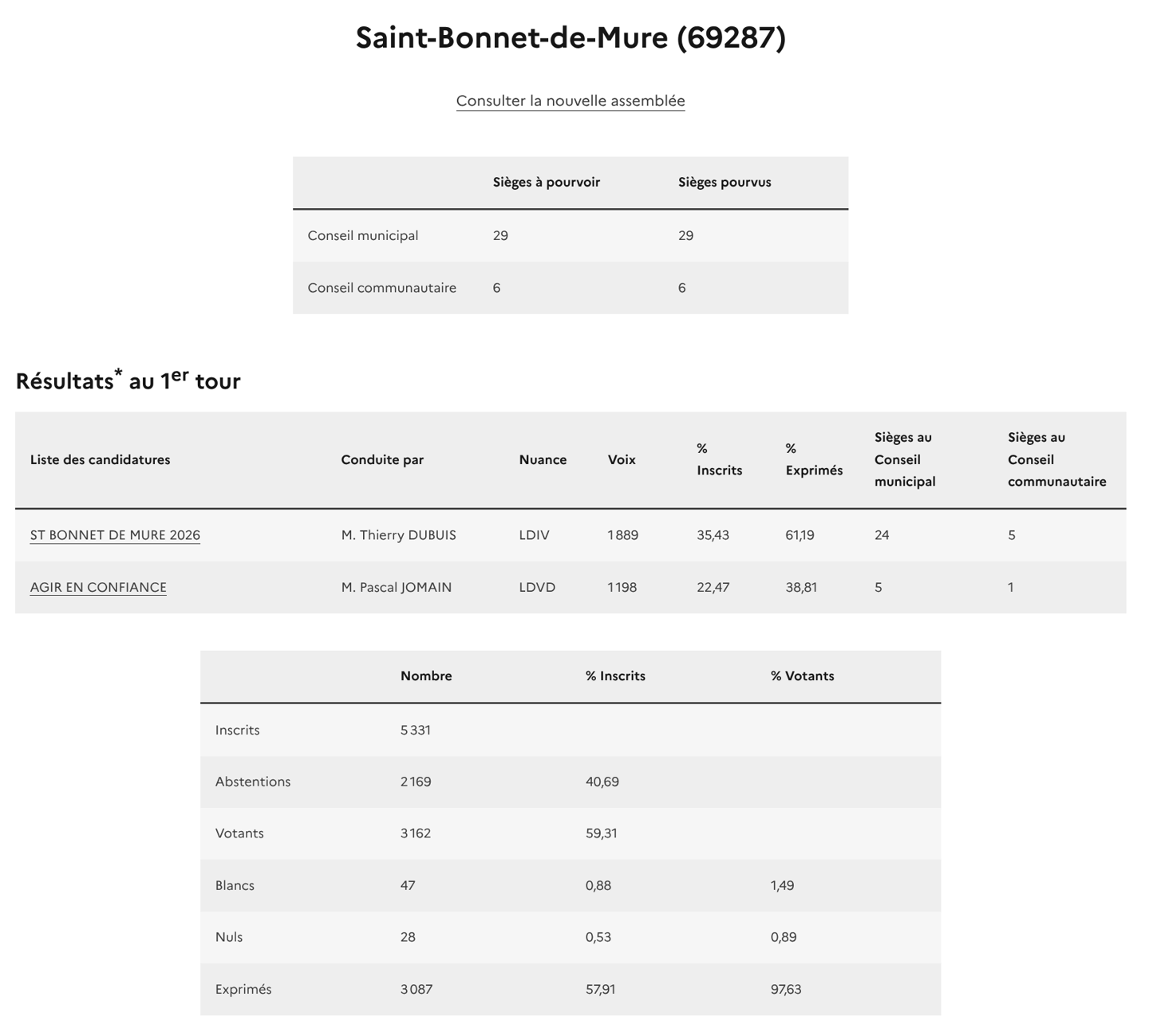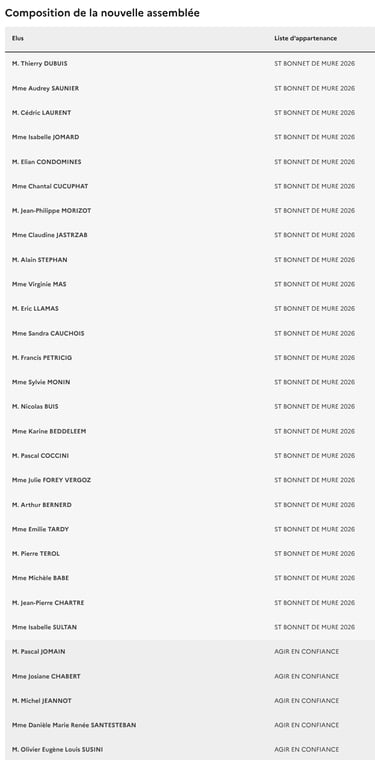 Liste "St Bonnet de Mure 2026 Votre avenir, Notre engagement !" conduite par Thierry DUBUIS